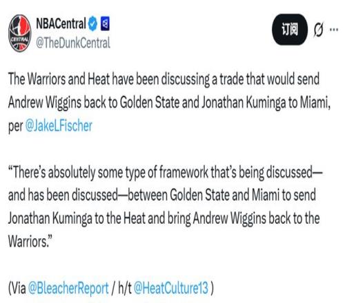北京時(shí)間1月28日,據(jù)名記Fischer報(bào)道,勇士與熱火之間確實(shí)正在談判,而且此前也一直在磋商一套交易框架,核心內(nèi)容是將庫(kù)明加送至熱火,讓維金斯重返勇士。